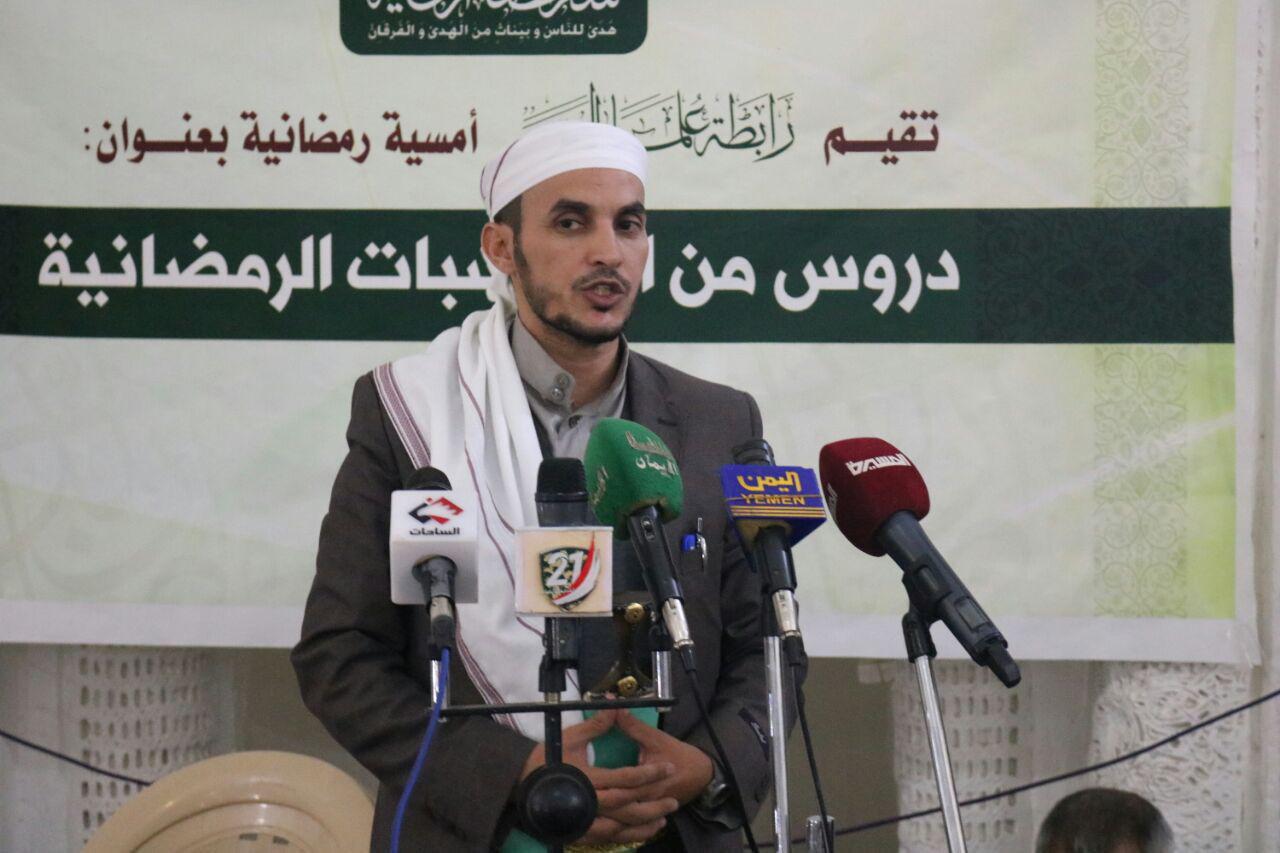 نظمت رابطة علماء اليمن بجامع المدرسة الشمسية بمدينة ذمار أمسية رمضانية بمناسبة ذكرى استشهاد الإمام علي بن أبي طالب كرم الله وجهه بعنوان “دروس من المناسبات الرمضانية”.