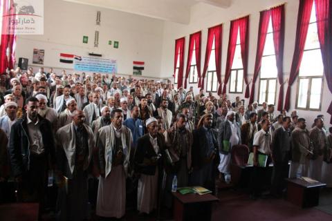نظم مكتب الأوقاف والإرشاد بمحافظة ذمار اليوم، لقاء موسع للعلماء والخطباء والمرشدين تحت شعار ” إعلان النفير العام في مواجهة العدوان السعودي الأمريكي ورفض جرائمه بحق أبناء الشعب اليمني”.